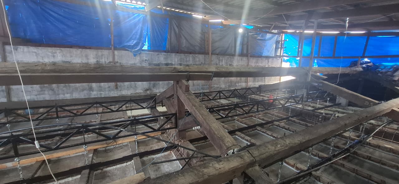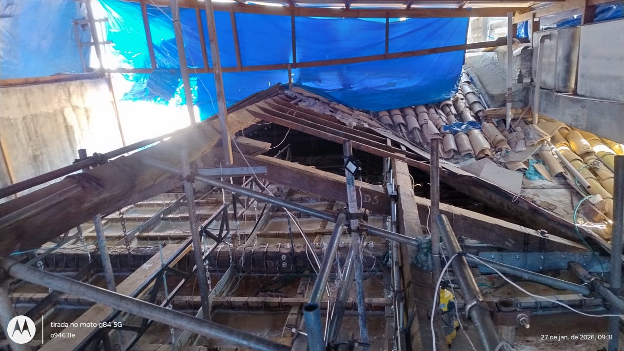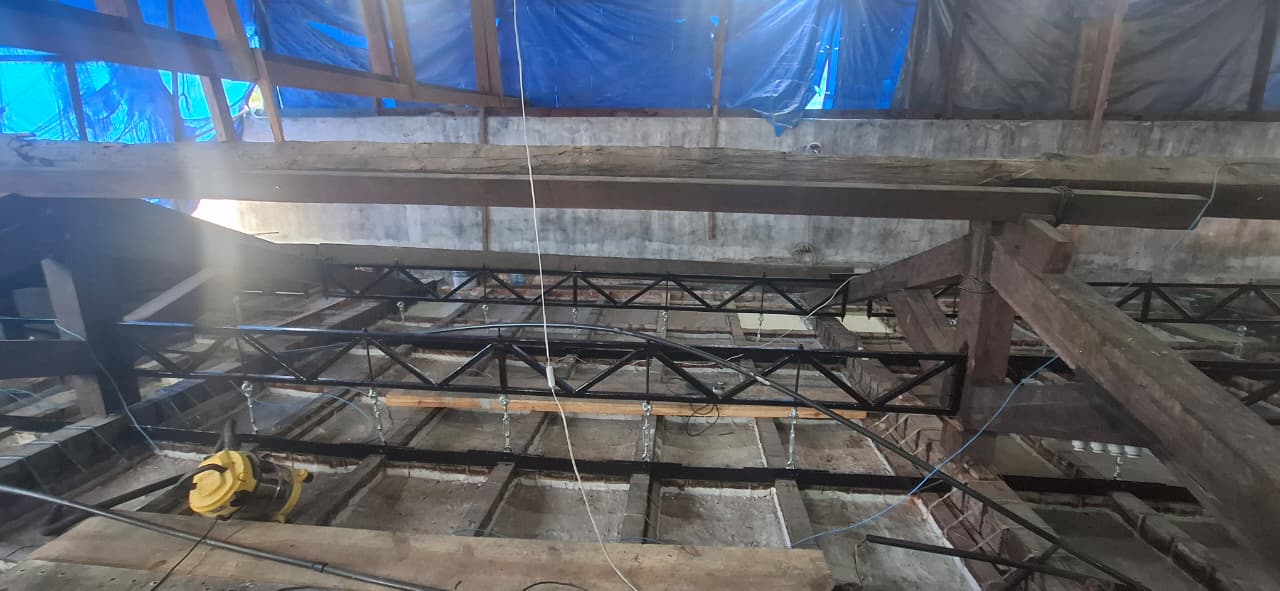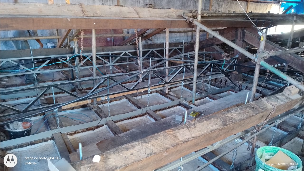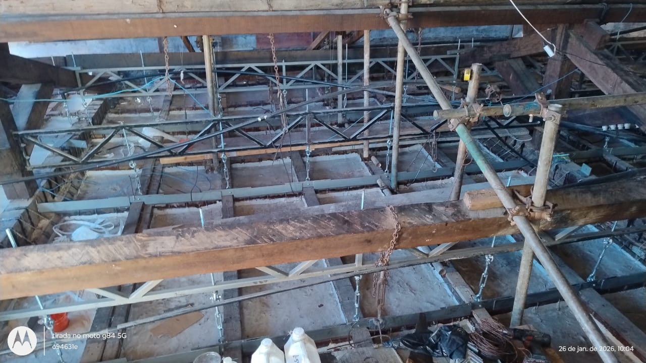 Recuperação da tesoura de madeira/cobertura e restauração da estrutura do forro da sala de jantar do Palácio Museu Olímpio Campos – PMOC