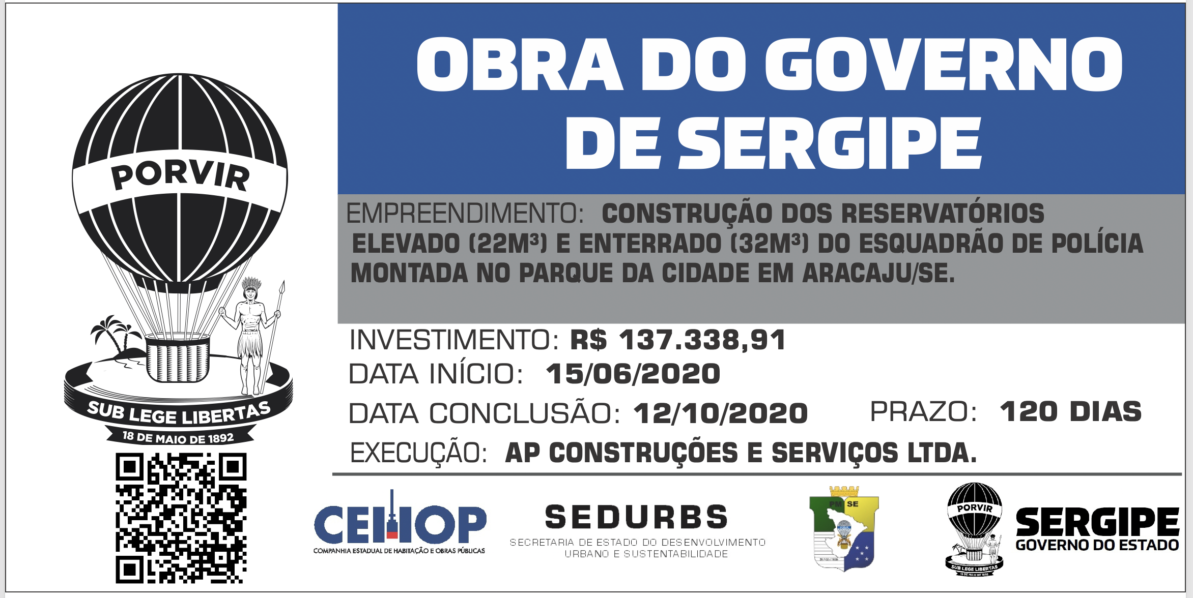 Objeto: Construção dos Reservatórios Elevado (22 m3) e Enterrado (32 m3) da Polícia Montada no Parque da Cidade