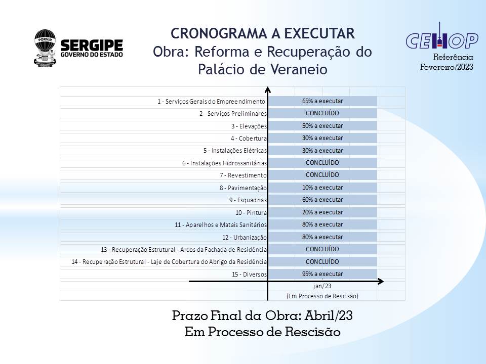 | Objeto: | Reforma e Recuperação no Palácio de Veraneio | |||||||||||